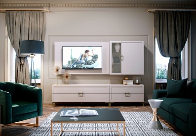 Тумба Дольче под телевизор с выдвижными ящиками Кашемир серый
