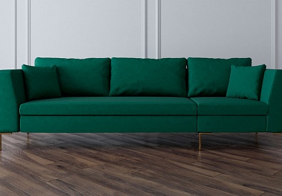 Диван МОНАКО с правой оттоманкой (мех. дельфин) Зеленый (Premier 18), Велюр