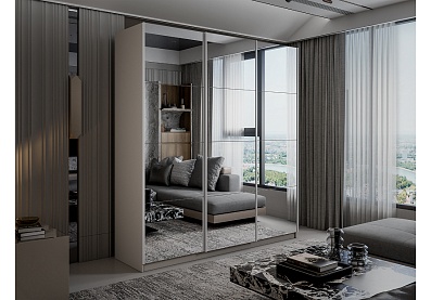 Шкаф-купе Lux 210х230х57 зеркальные фасады / Кашемир 210x230 Кашемир , С полками