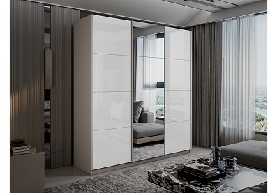 Шкаф-купе Lux с зеркальными дверцами 160x230 Белый, С полками