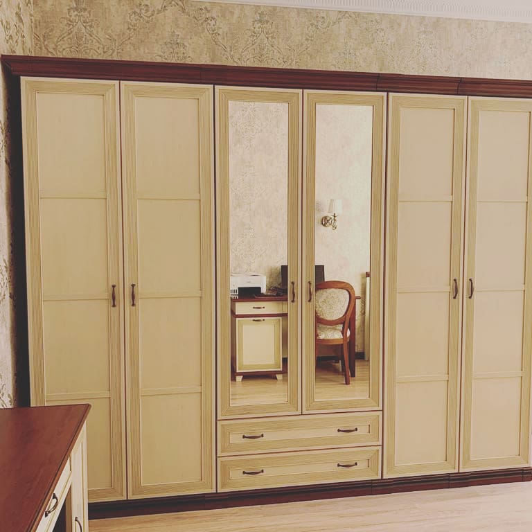 Мебель добротная и качественная, шкафы глубокие и вместительные, цвет приятный и спокойный.