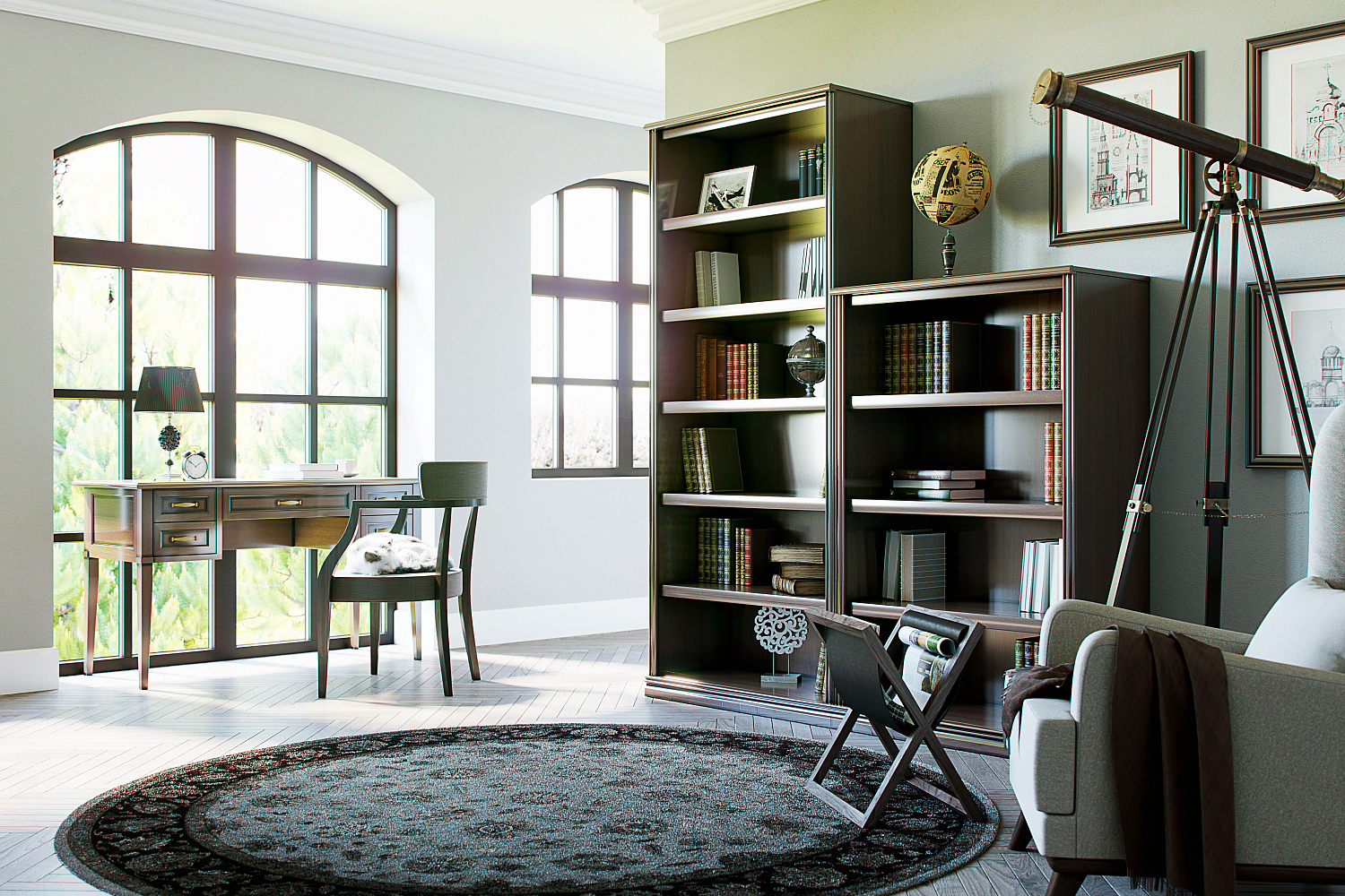 Строгие филенки, высокие тонкие ножки, выступающие края столешницы подчеркивают классический дизайн. Традиционное оформление соблюдено во всем, начиная от теплого древесного цвета «старый клен» и заканчивая четкой геометрией и симметричностью изделия. Латунная фурнитура оформлена в оттенке «античная бронза». «Адажио» идеально впишется в обстановку в стиле классика, модерн, ар-деко.