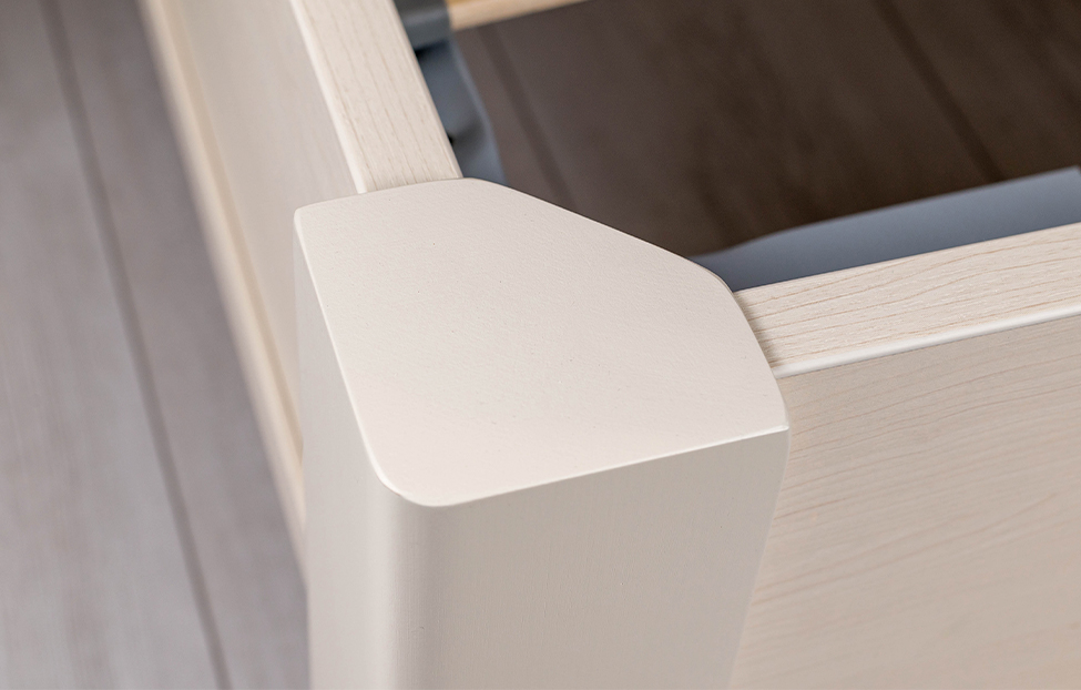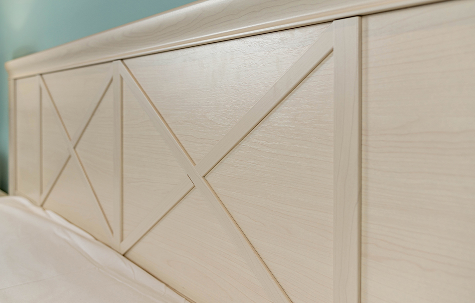 Несложные очертания, минималистичная отделка, исполнение в теплом светлом оттенке — модель «Кантри» великолепно подойдет для оформления спальни в деревенском или классическом стиле. Матовое покрытие в цвете валенсия с видимым природным рисунком выглядит естественно и гармонично. Жесткое изголовье украшено изящными фахверками и лаконичными карнизами, углы кровати слегка закруглены.
