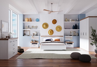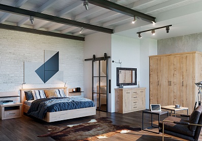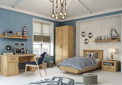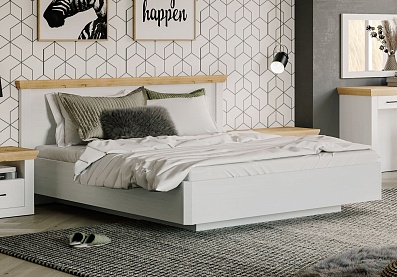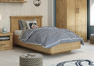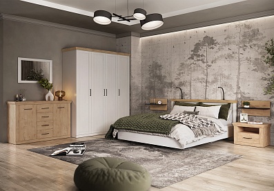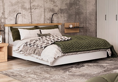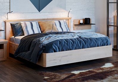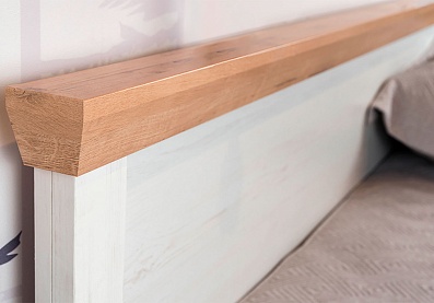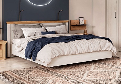 Модель с ортопедическим основанием из березовых ламелей предназначена для комфортного отдыха и здорового сна. Универсальное цветовое решение подойдет для интерьера в стиле кантри, прованс, сканди, облегченный лофт, минимализм, классика. Удачное сочетание древесной текстуры «дуб бунратти» с нейтральным оттенком «блан-шене» создает умиротворяющую атмосферу, которая так необходима в спальне.