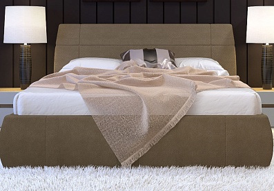 Края изделия скруглены, что значительно снижает риск травмы в ночном полумраке. Высокое изголовье защитит от холодных стен и сквозняков. Расположенная по периметру опора создает визуальный эффект парения и вместе с тем облегчает процесс уборки подкроватного пространства.