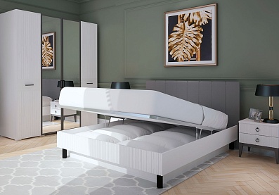 Кровать рассчитана на 120-150 кг (нагрузка на одно спальное место). Подъемный механизм и ящик для белья отсутствуют. Матрас в комплект не входит, для его подбора обратитесь к консультантам интернет-магазина «Ангстрем».