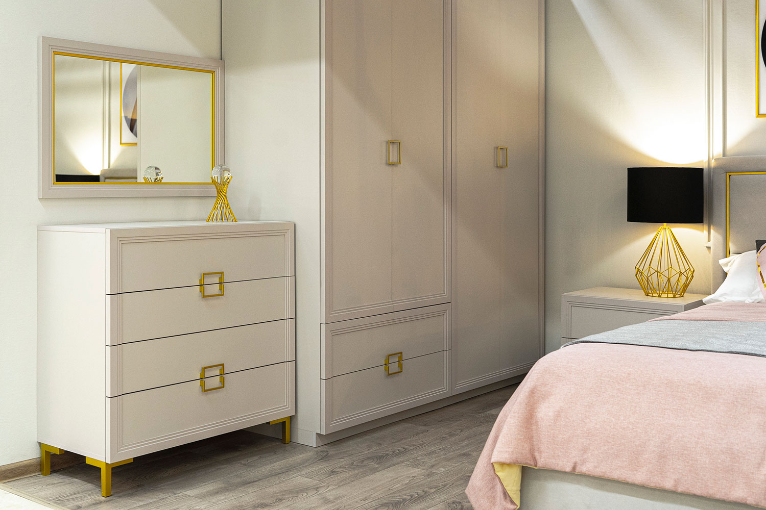 - Шкаф для одежды с полкой, штангой и двумя выдвижными ящиками;