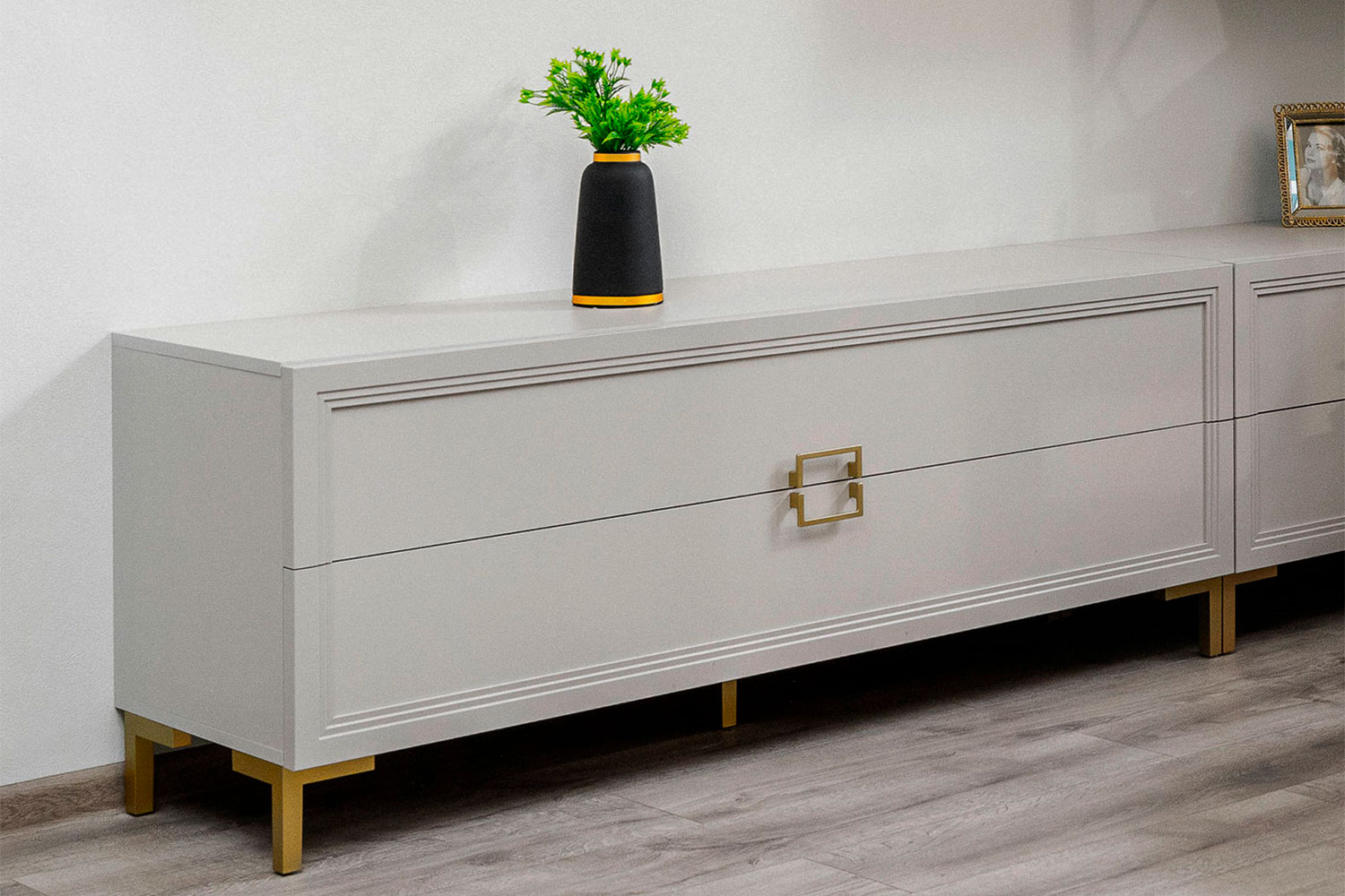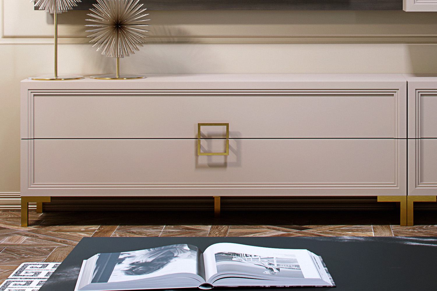 - Тумба с четырьмя выдвижными ящиками (за одним фасадом по 2 ящика);