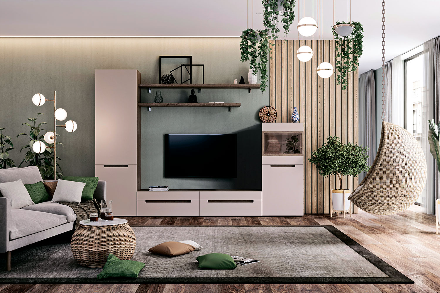 - Для гостиной используется крепежная фурнитура и механизмы ведущих производителей. Такая фурнитура позволит мебели прослужить дольше, не требуя частого ремонта. Петли оснащены доводчиками для более плавного закрывания дверей;