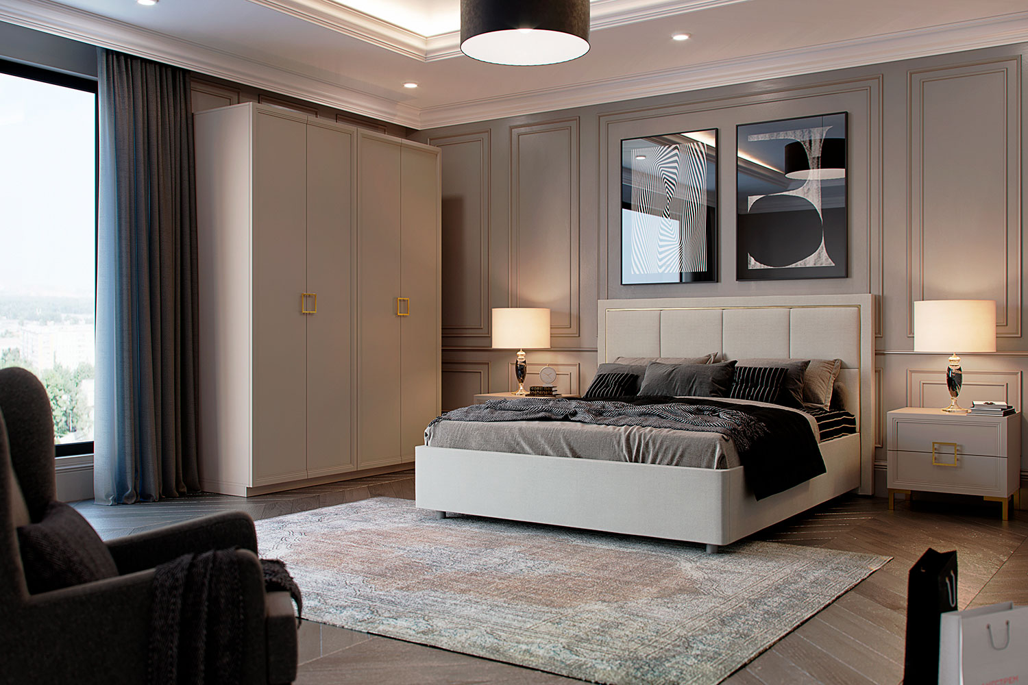 – описание: стиль ар-деко, минимализм, цвет кашемир серый.