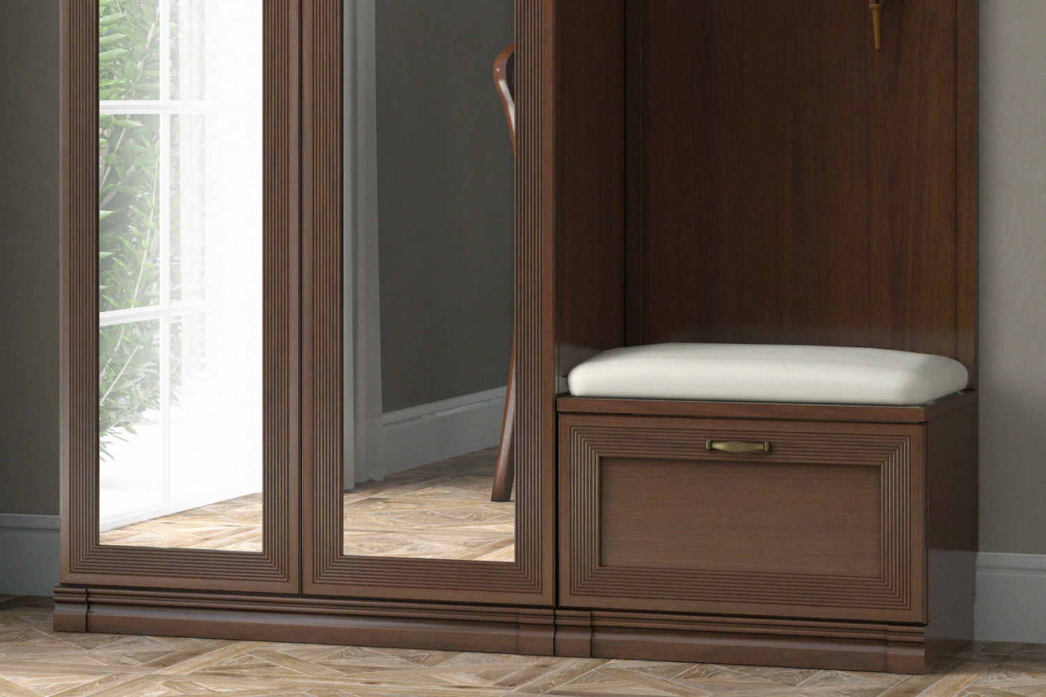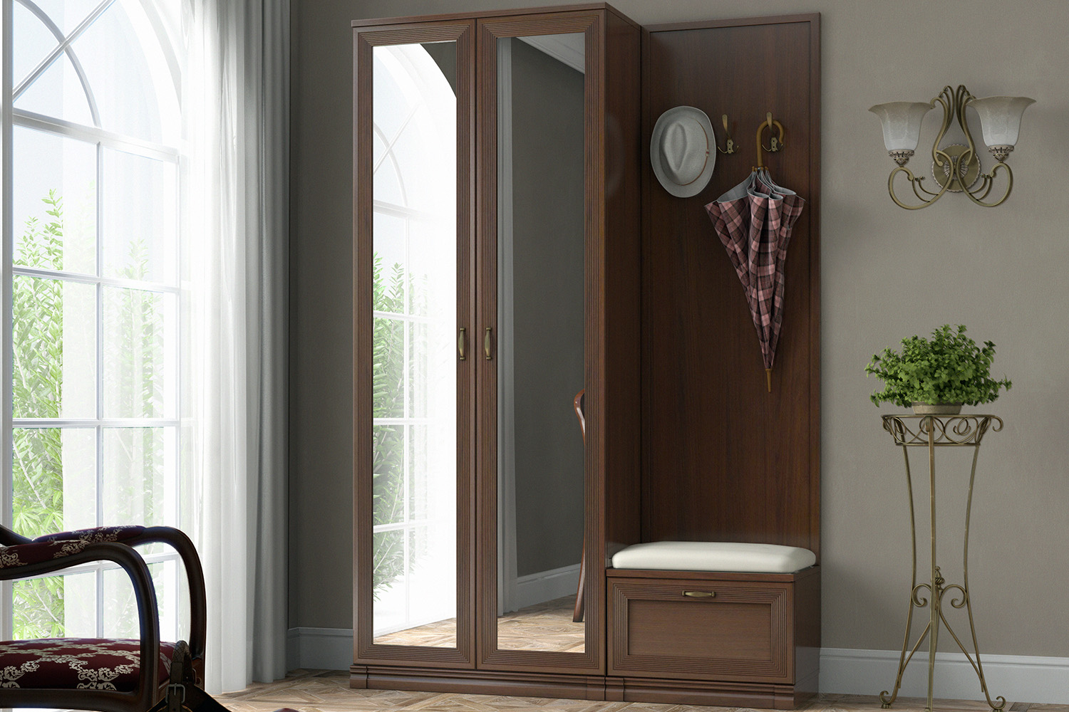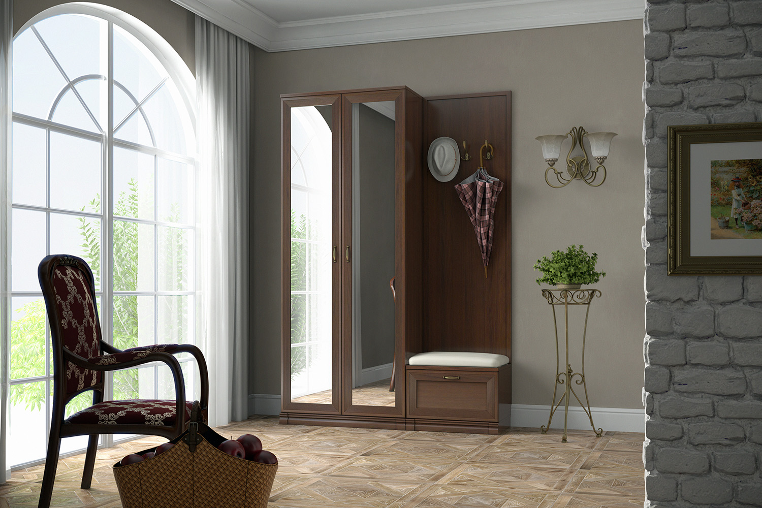 - Адажио — образец сдержанности и изящества, стиля и элегантности. Такая мебель подойдет не только к классическим интерьерам, но и к прихожим в стилях фьюжн, контемпорари и эклектика;