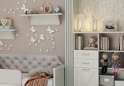 К этой мебели подойдут аксессуары в стиле неоклассика, ковры с винтажным потертым рисунком, плетеные пуфы и вязанные пледы. Если вы хотите добавить акцентов в интерьер — используйте стулья и кресла ярких оттенков, для более «спокойного» интерьера — выбирайте приглушенные тона. Не забудьте про туалетный столик, который сделает утренние и вечерние ритуалы еще приятнее.