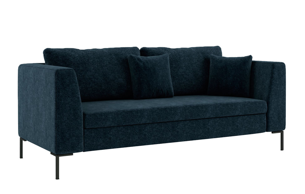 Использование экологически чистых материалов способствует безопасности при установке мебели в спальне, детской комнате или гостиной. Темная мягкая мебель выглядит дорого и солидно. Респектабельность модели подчеркивает прогрессивный обивочный материал — микровелюр, который приятен на ощупь, устойчив к выцветанию и практичен в эксплуатации. Тонкие металлические ножки, окрашенные в чёрный цвет, соответствуют общему стилю. Вместительный трёхместный диван идеально впишется в современную модную гостиную. Чёткие прямоугольные формы, скошенные подлокотники, низкая спинка — такой дизайн будет также хорошо смотреться в строгом рабочем кабинете, домашней библиотеке или в зоне ресепшн.