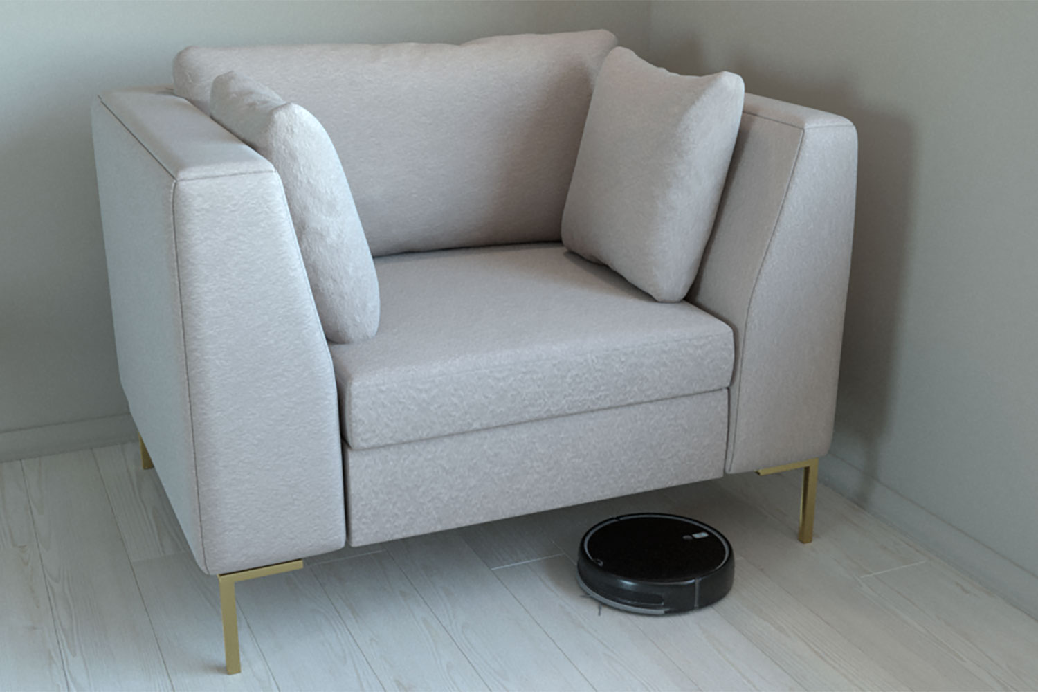 - Высота опор: 17 см (подходит для большинства моделей роботов-пылесосов, измерьте свою модель пылесоса перед покупкой дивана);