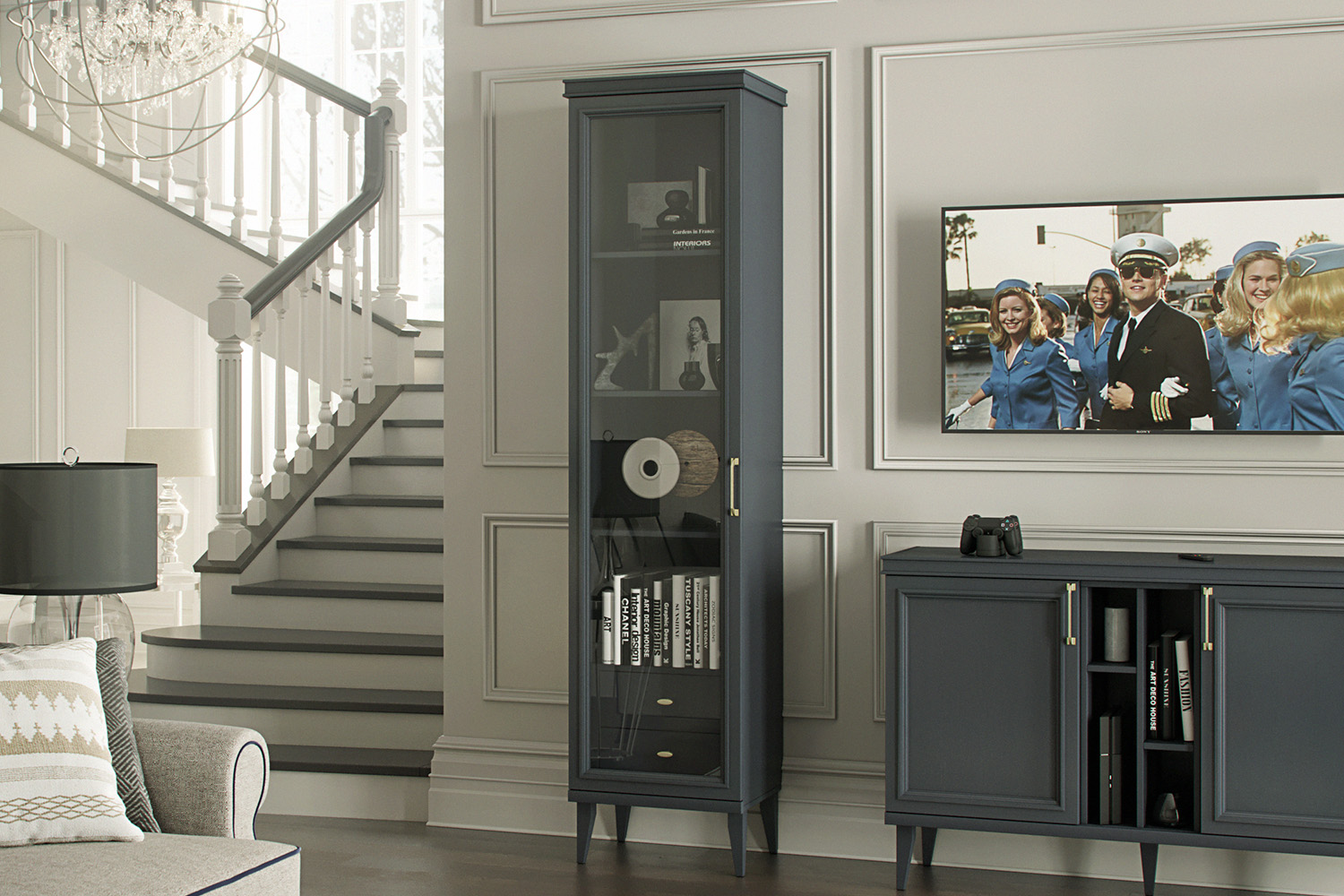 – описание: размер 218.5x52.7x42.5 см, назначение для книг, для посуды, многоцелевой, стиль английский, неоклассика, цвет серый уголь.