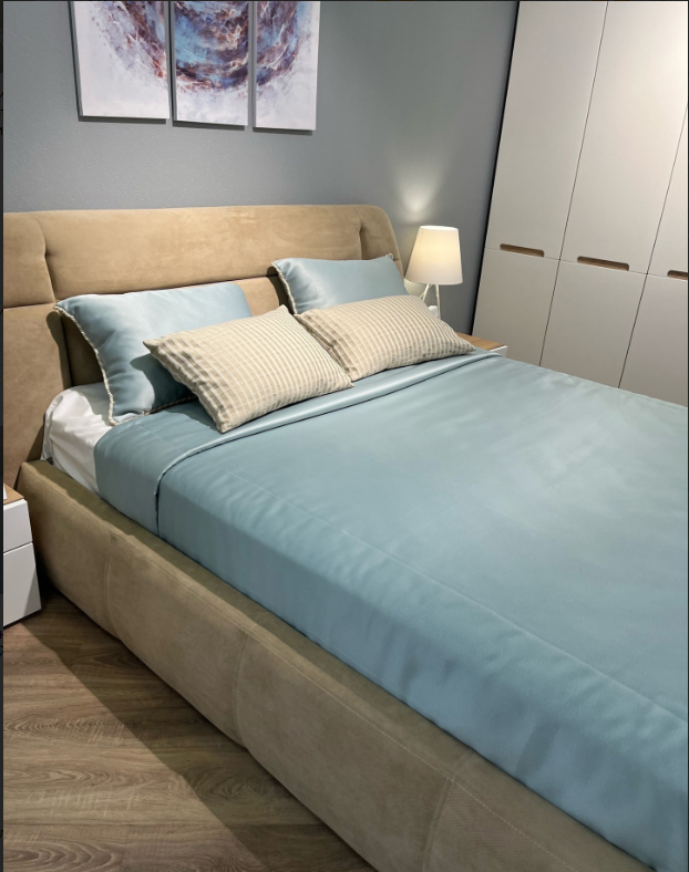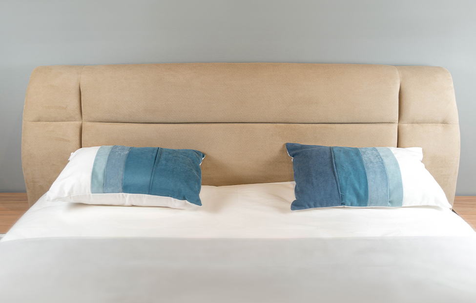 - Изголовье современного дизайна не трансформируется, декорировано утяжными элементами;