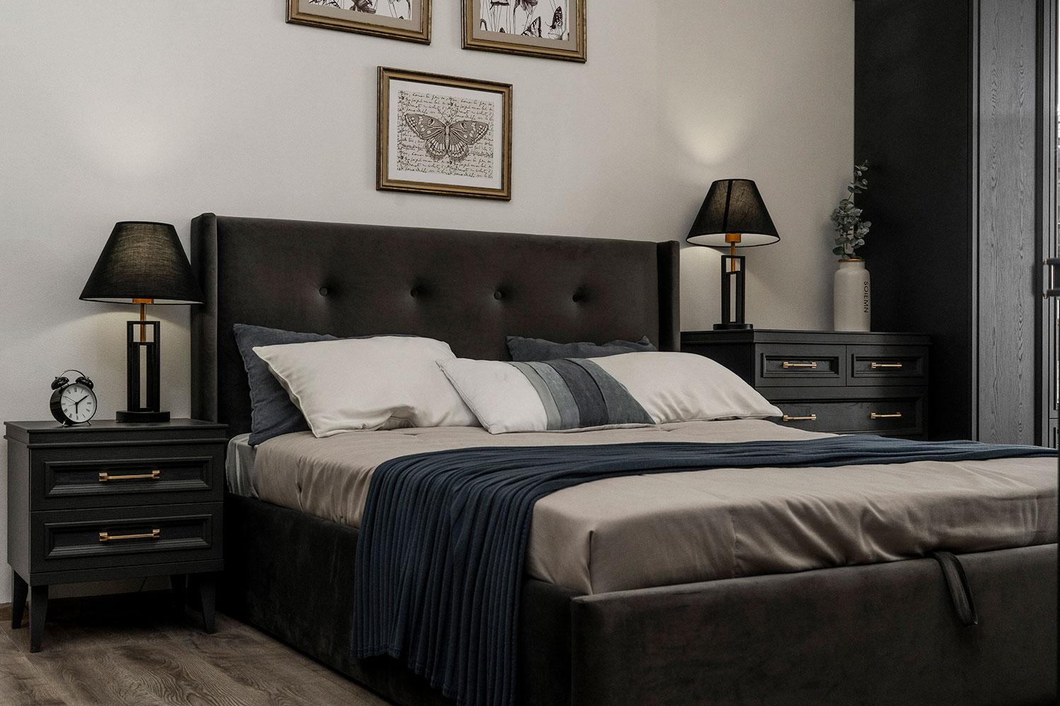 – описание: стиль английский, неоклассика, цвет серый уголь.