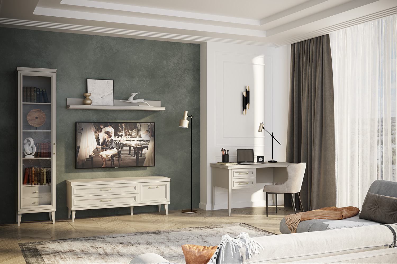 – описание: стиль английский, неоклассика, цвет ярко-серый, размер 58x152x42.5 см.