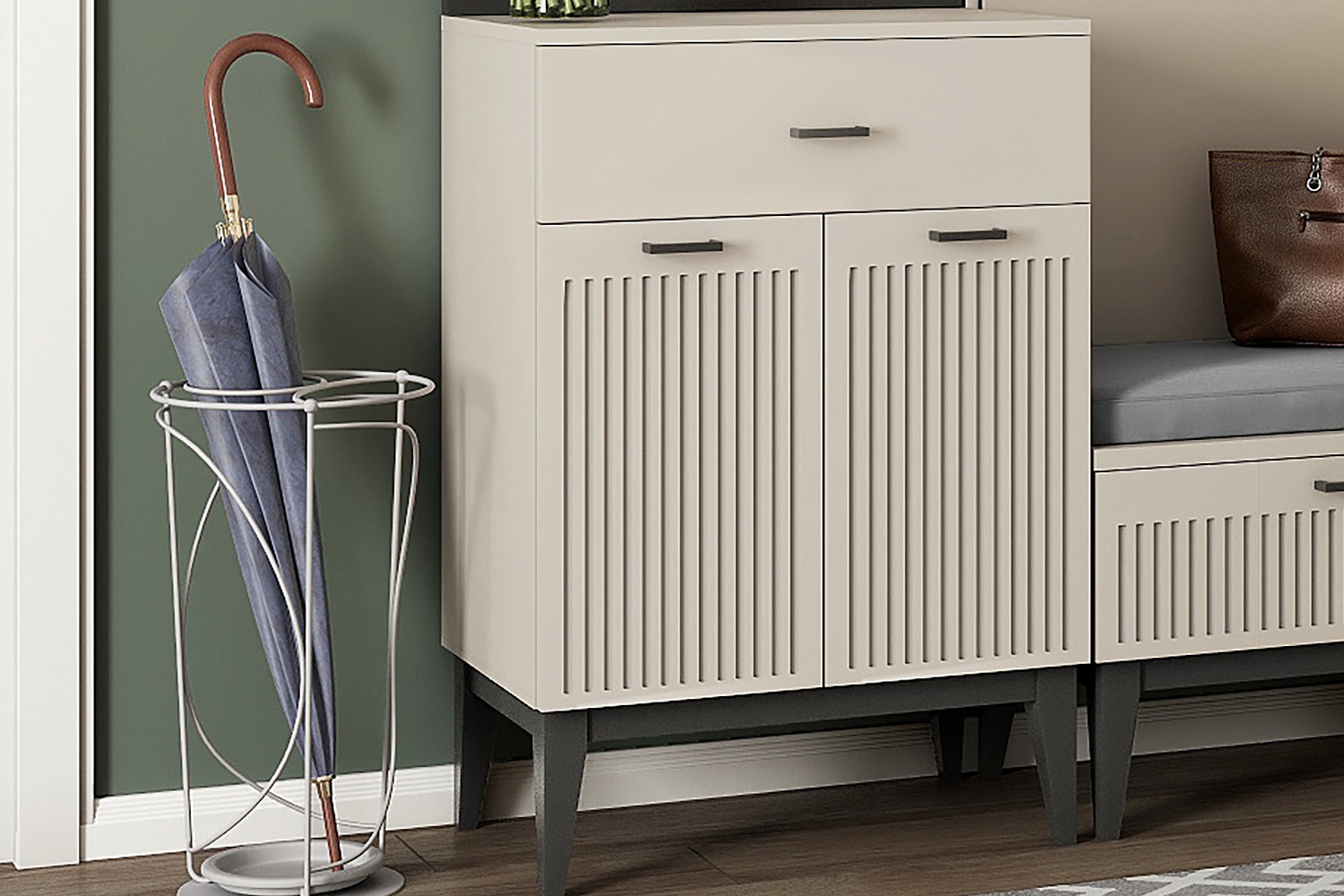• Тумба установлена на буковых опорах, окрашенных эмалью серого цвета;