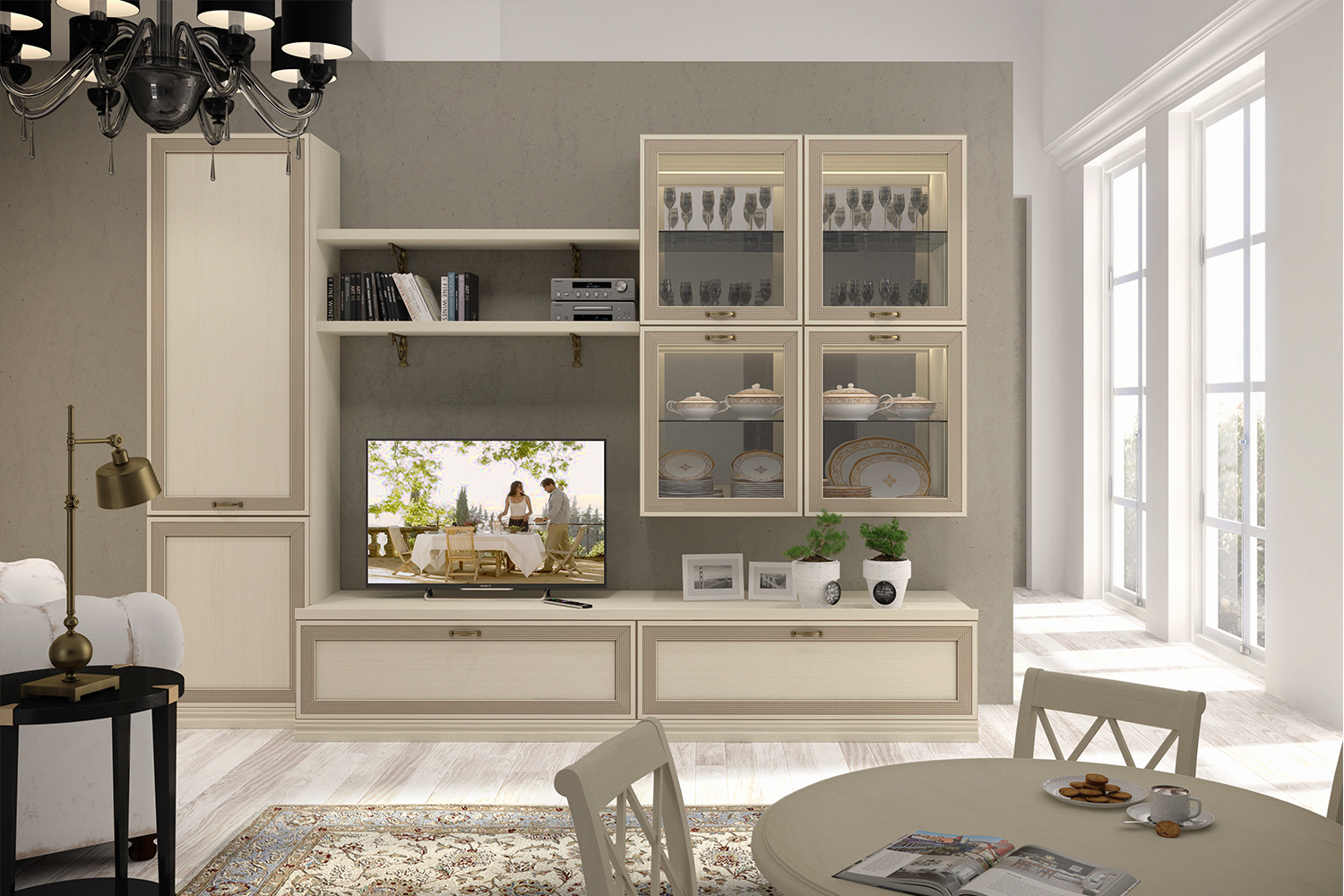 - Гостиная Адажио понравится семейным людям, ценителям классики и традиций. Она создана для уютных вечеров с близкими людьми, размеренному чтению любимых книг и просто приятных кинопросмотров за кружкой чая;