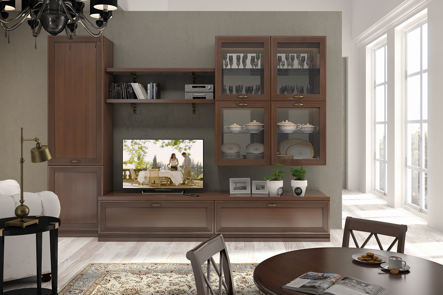 • Гостиная Адажио понравится семейным людям, ценителям классики и традиций. Она создана для уютных вечеров с близкими людьми, размеренному чтению любимых книг и просто приятных кинопросмотров за кружкой чая;