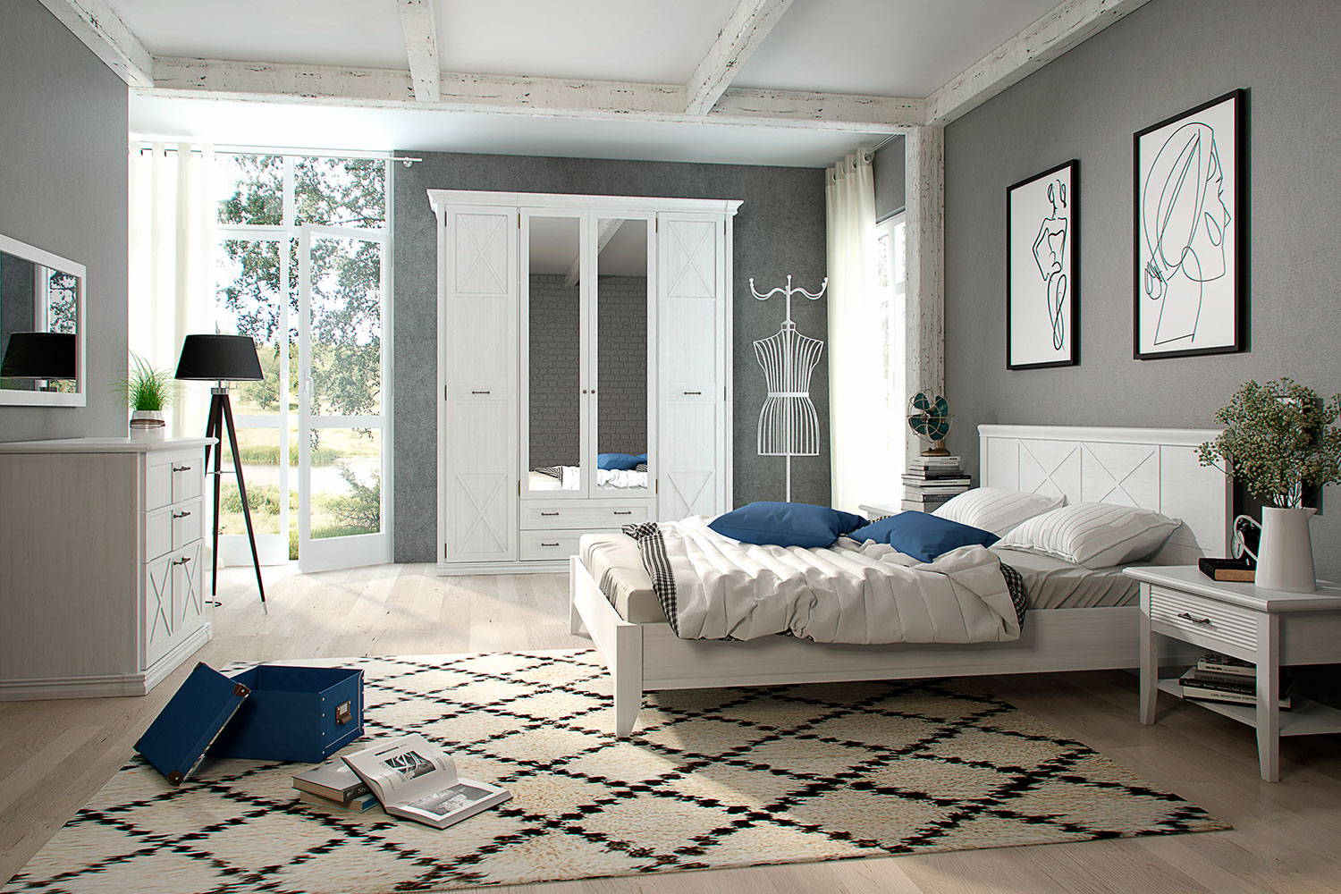 • Спальня в классическом стиле. Кантри — одна из любимых коллекций наших клиентов. Такая мебель подойдет к интерьерам в стилях прованс, кантри или сканди. При создании этой коллекции наш дизайнер вдохновлялась самобытной архитектурой Германии с ее характерной фахверковой системой;