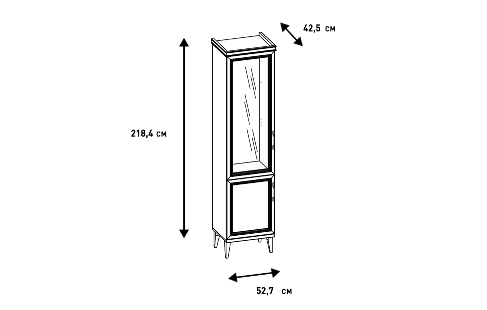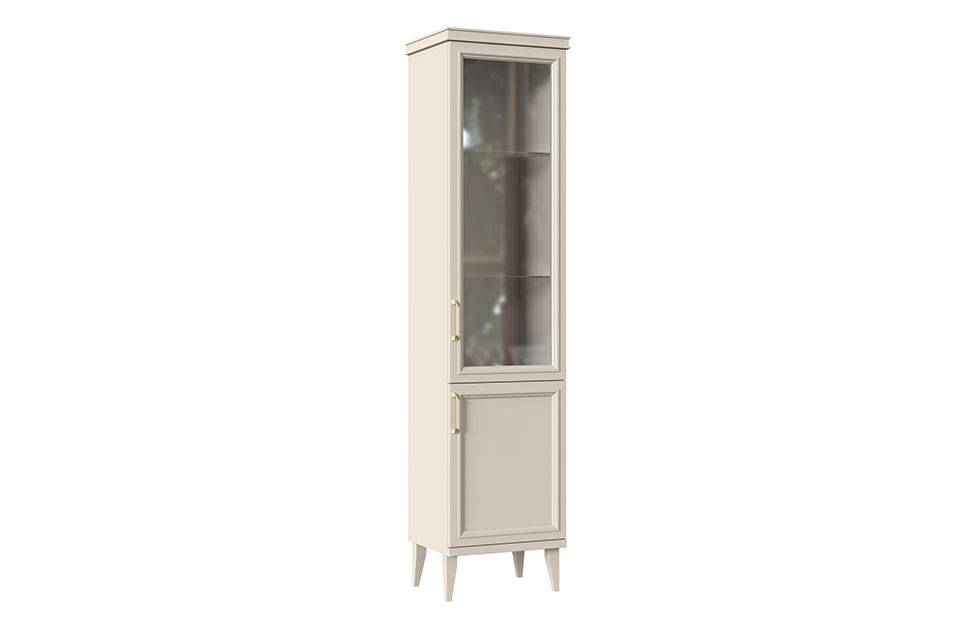 - Шкаф 1-створчатый с 1 стеклянным фасадом и 1 глухим фасадом;