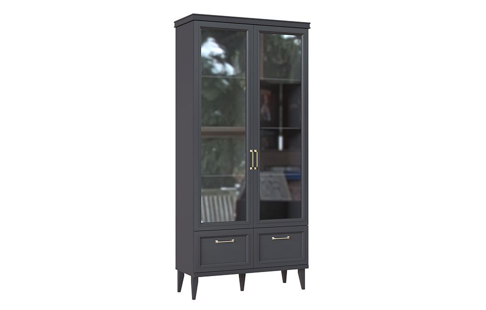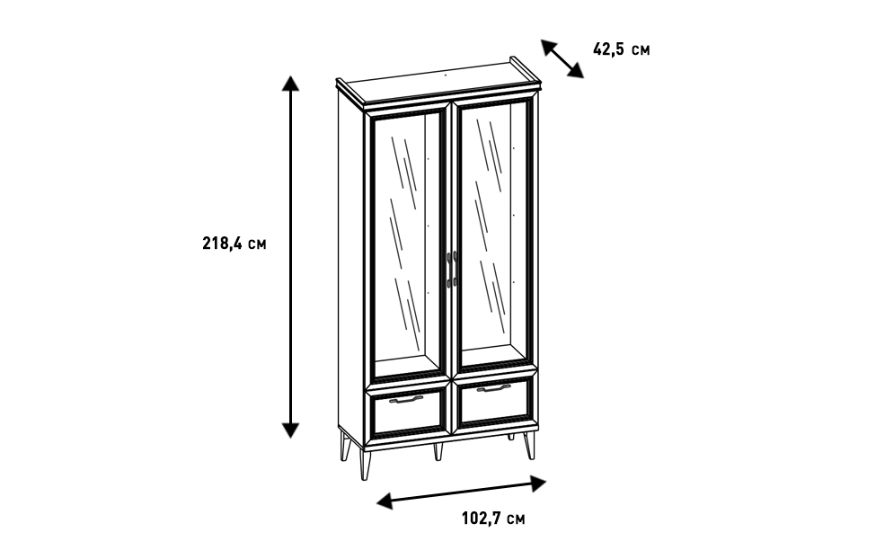 - Шкаф 2-створчатый с 2 стеклянными фасадами и 2 выдвижными ящиками;