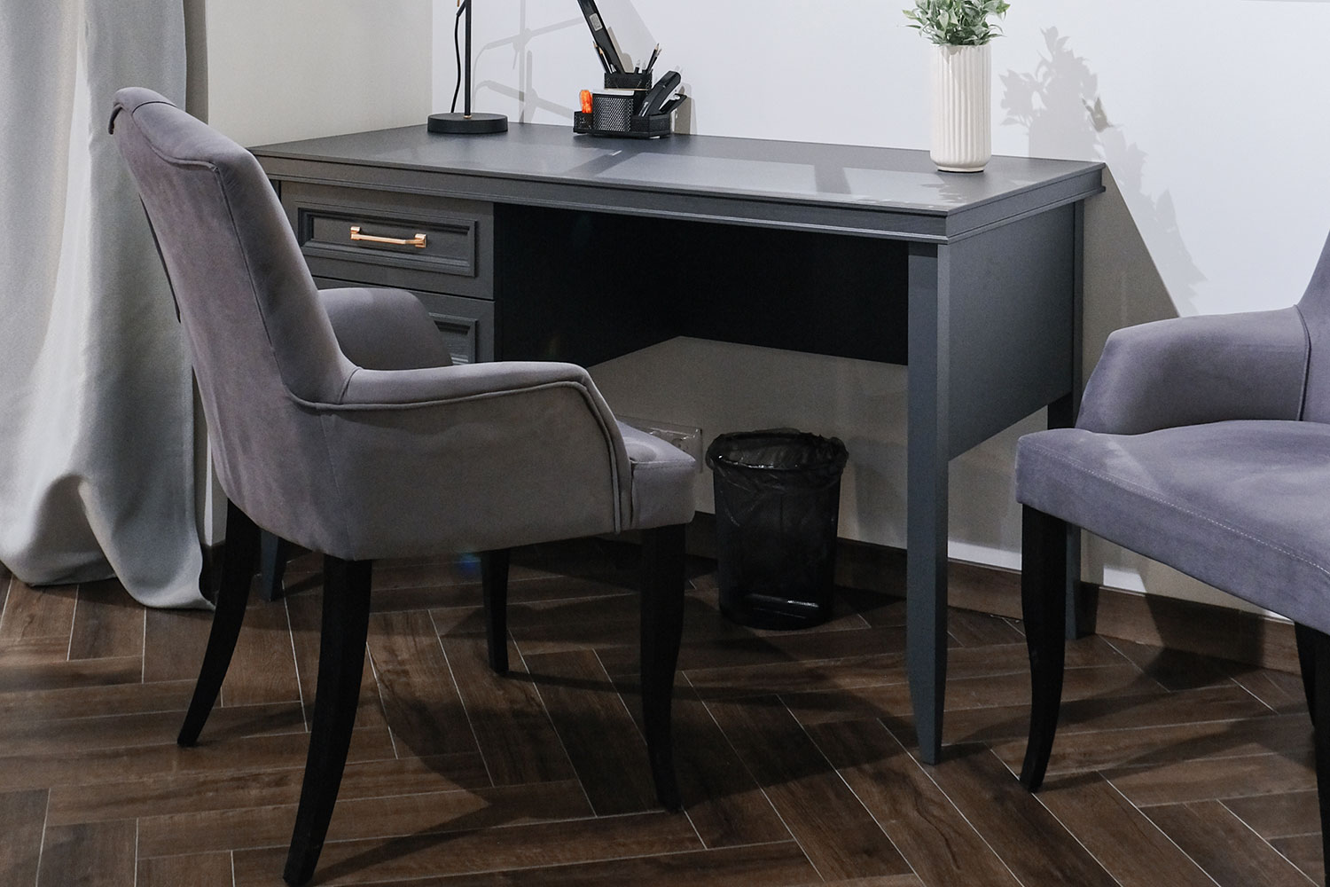– описание: стиль английский, неоклассика, цвет серый уголь, назначение для работы, для дома, размер 78x130x65 см.