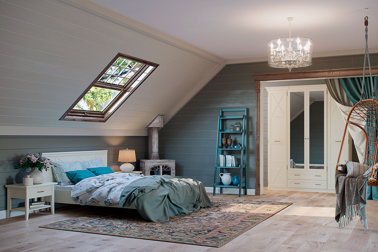 К этой мебели подойдут аксессуары в стиле неоклассика, ковры с винтажным потертым рисунком, плетеные пуфы и вязанные пледы. Если вы хотите добавить акцентов в интерьер — используйте стулья и кресла ярких оттенков, для более «спокойного» интерьера — выбирайте приглушенные тона. Не забудьте про туалетный столик, который сделает утренние и вечерние ритуалы еще приятнее.