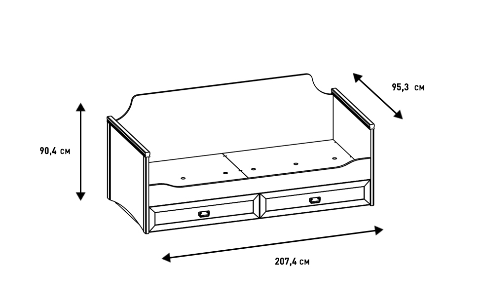 – описание: назначение для дома, для детской, размер спального места 90 х 200 см, стиль прованс, кантри, классический, неоклассика, материал обивки без обивки.