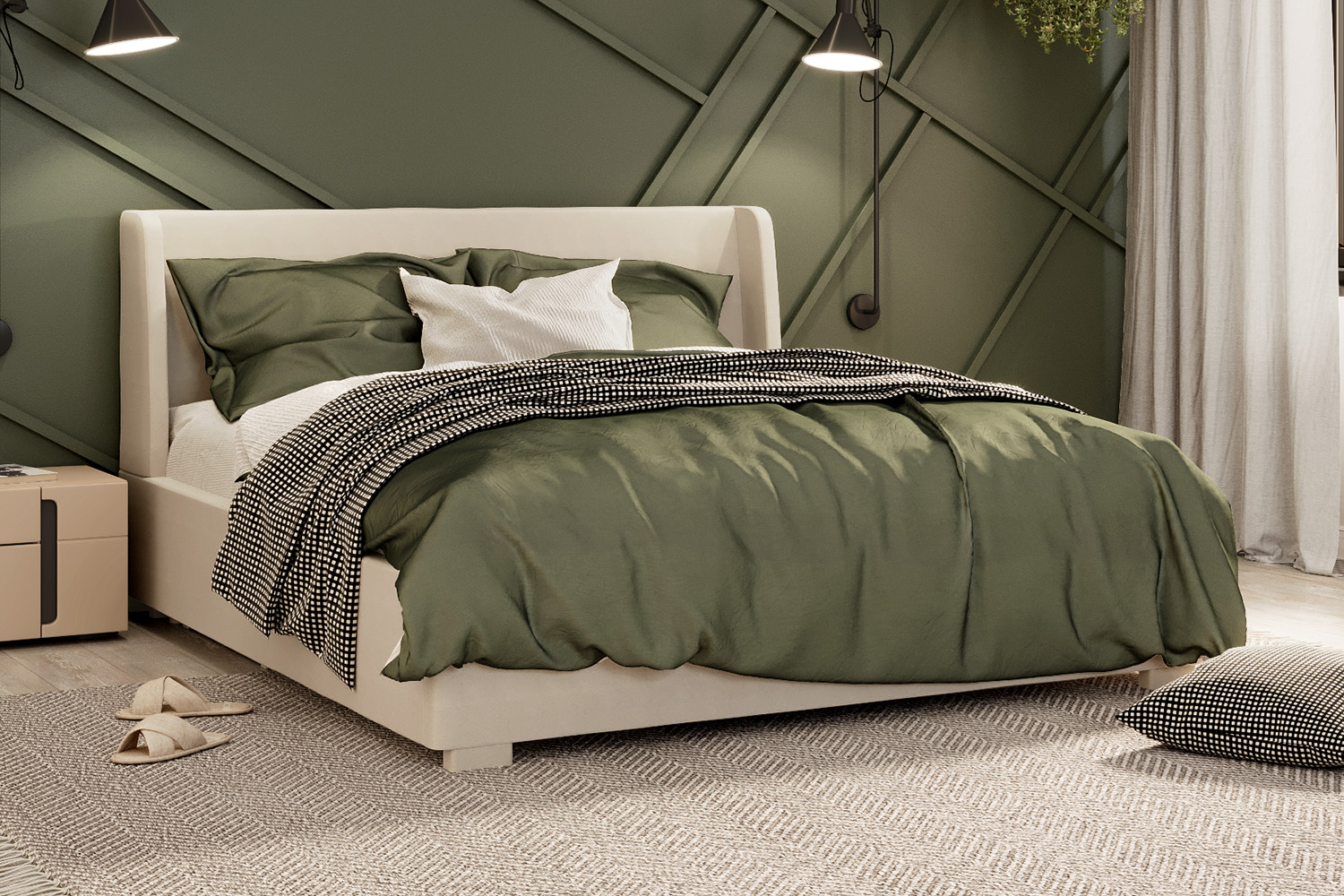– описание: стиль современный, назначение для дома, для спальни, цвет кашемир серый, материал обивки ткань.