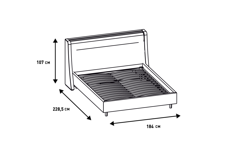 - Высота по изголовью: 107 см;