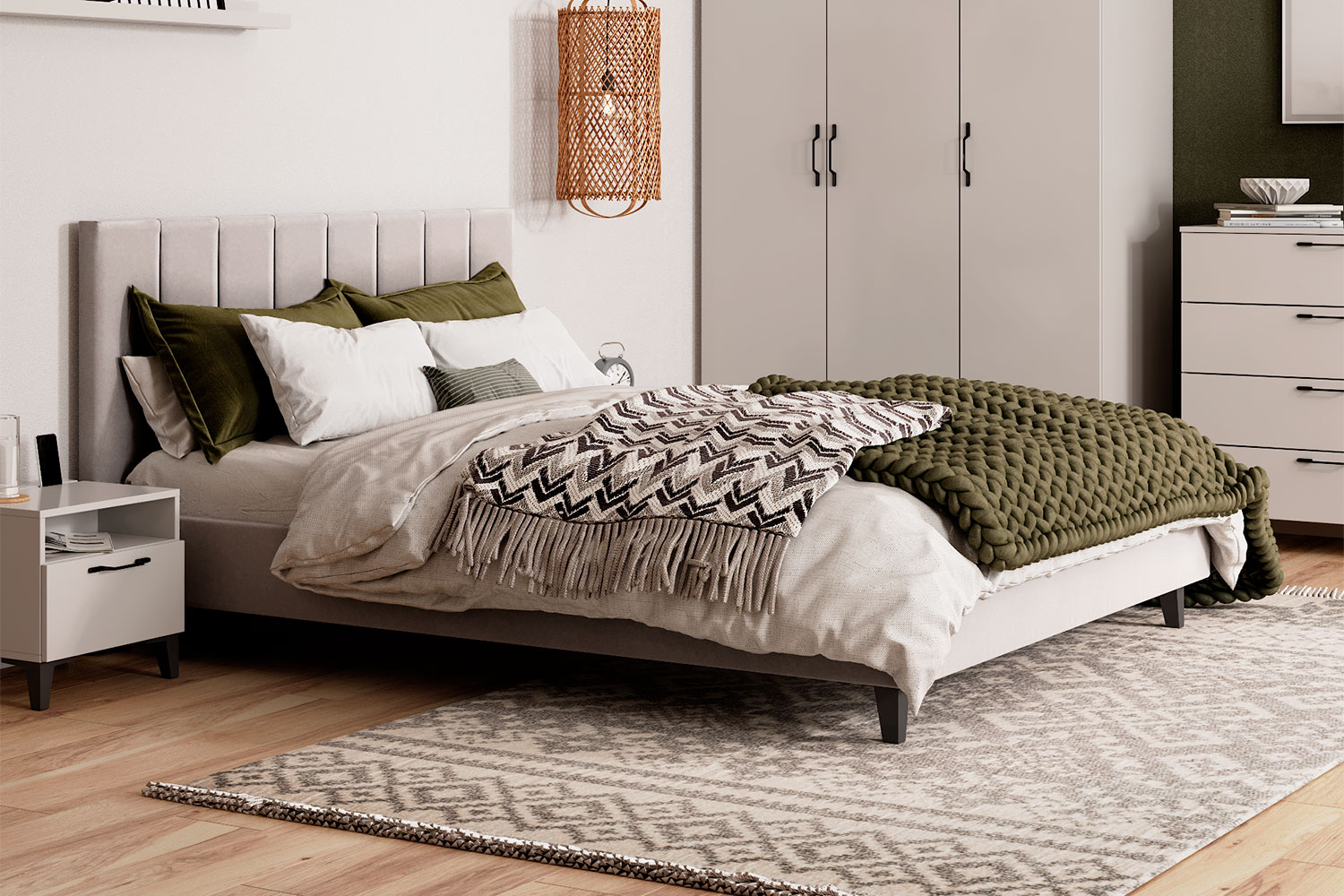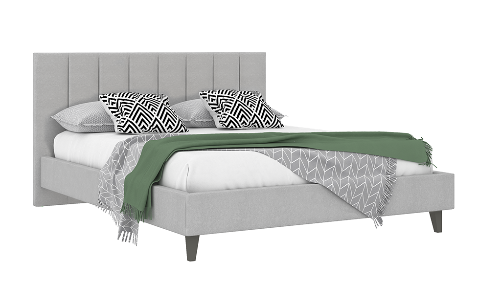 - Мягкая кровать «Нордин» идеально впишется в классический интерьер, который отличается симметричными линиями и сочетает в себе роскошь, эстетичность и практичность. Оттенки серого позволят создать ощущение комфорта в спальной комнате, а это очень важно для нормального отдыха;