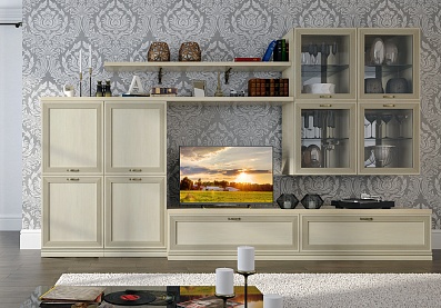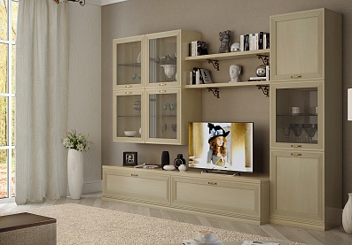 - Отделка фасадов выполнена испанским шелковисто-матовым лаком и патиной (эффект состаренного дерева);