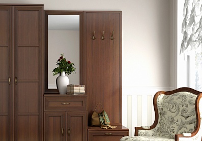 - Адажио — образец сдержанности и изящества, стиля и элегантности. Мебель из коллекции подойдет не только к классическим интерьерам, но и к прихожим в стилях фьюжн, контемпорари и эклектика;