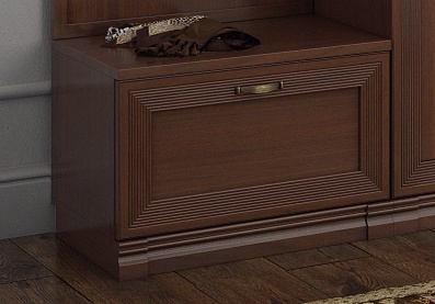 - Фасад тумбы для обуви откидывается вниз с помощью кронштейна;
