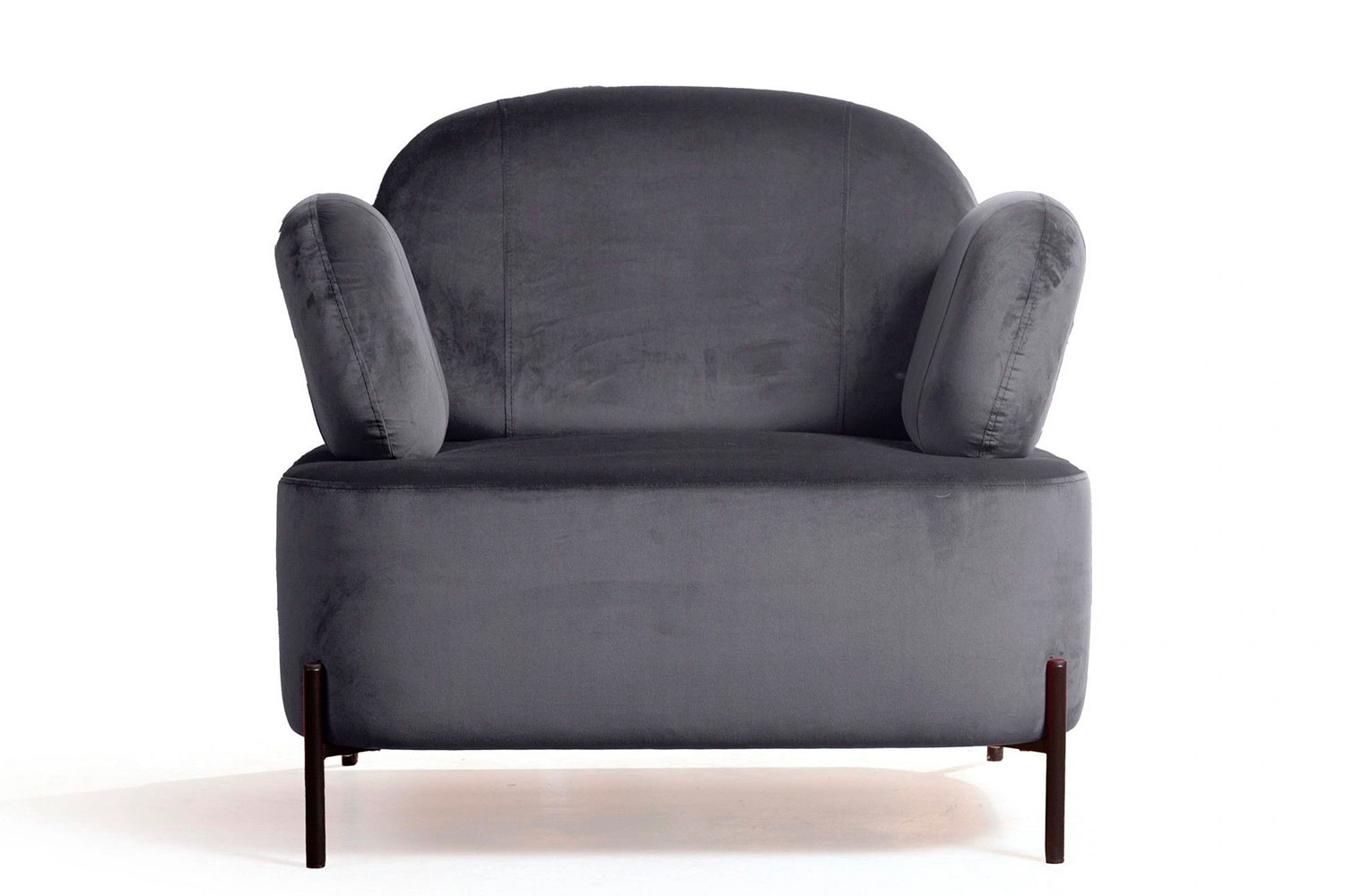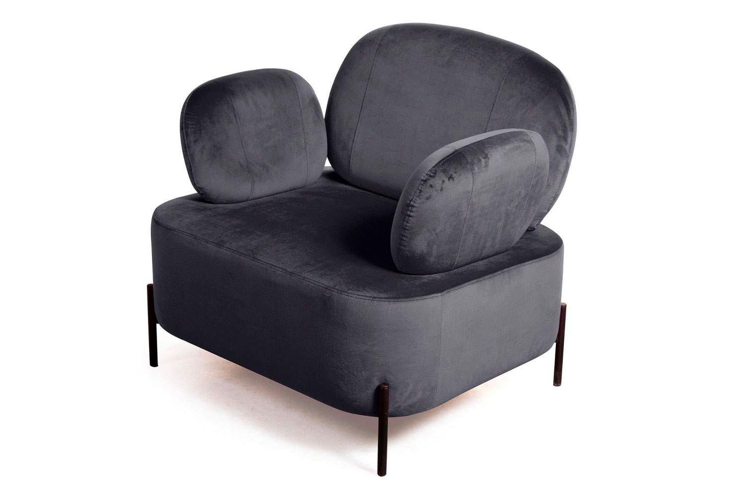 – описание: размер 81x86x74 см, цвет серый, материал обивки велюр, стиль современный, скандинавский.