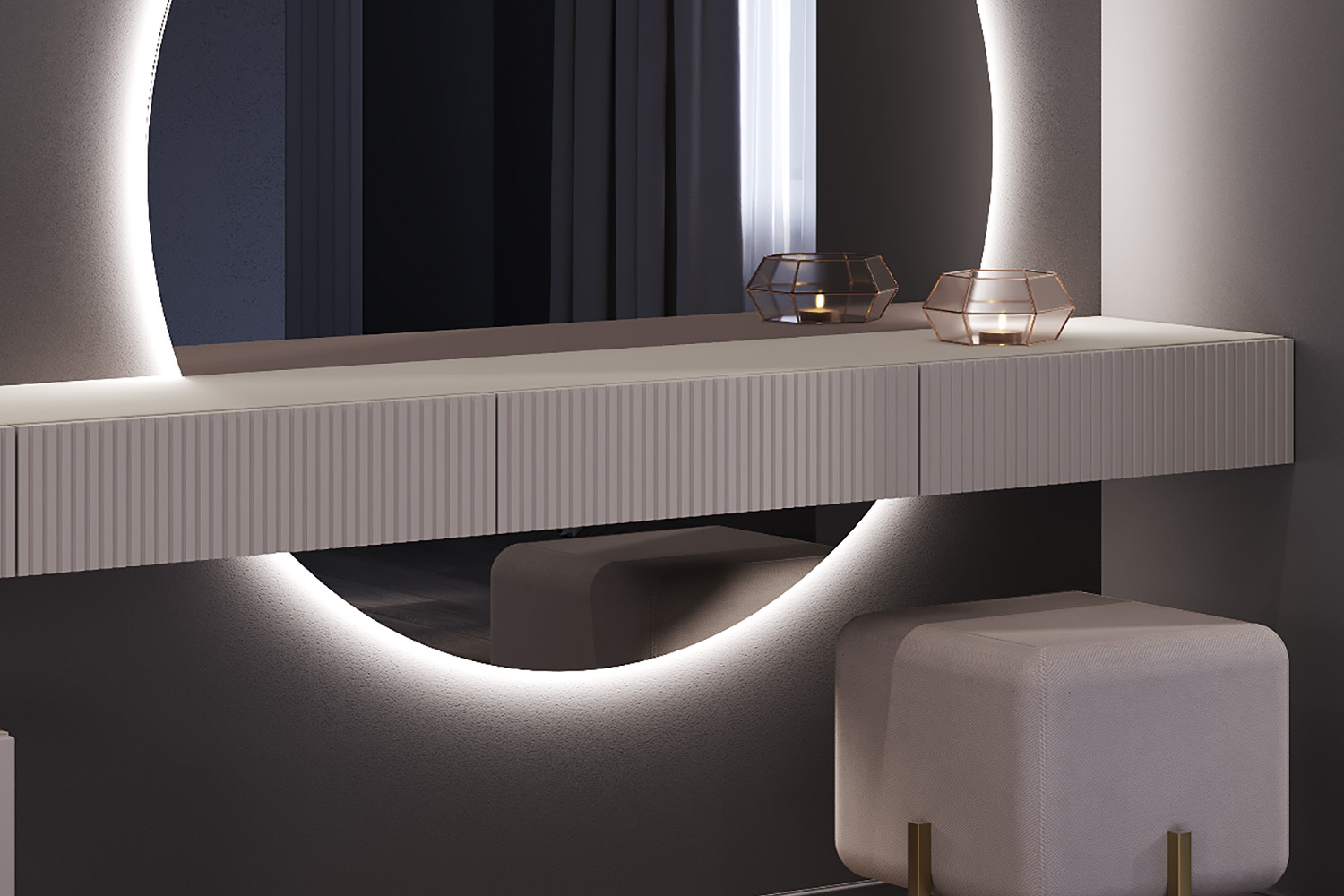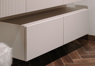 - Внимание! Открывание ящиков происходит путем захвата фасада снизу, поэтому нельзя навешивать вплотную снизу другие модули коллекции Дольче (открывание фасадов будет затруднительным).