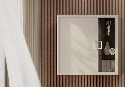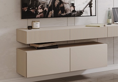 - Тумба Дольче ДЛ-323.02 — навесная с двумя выдвижными ящиками и фасадами с фрезеровкой;