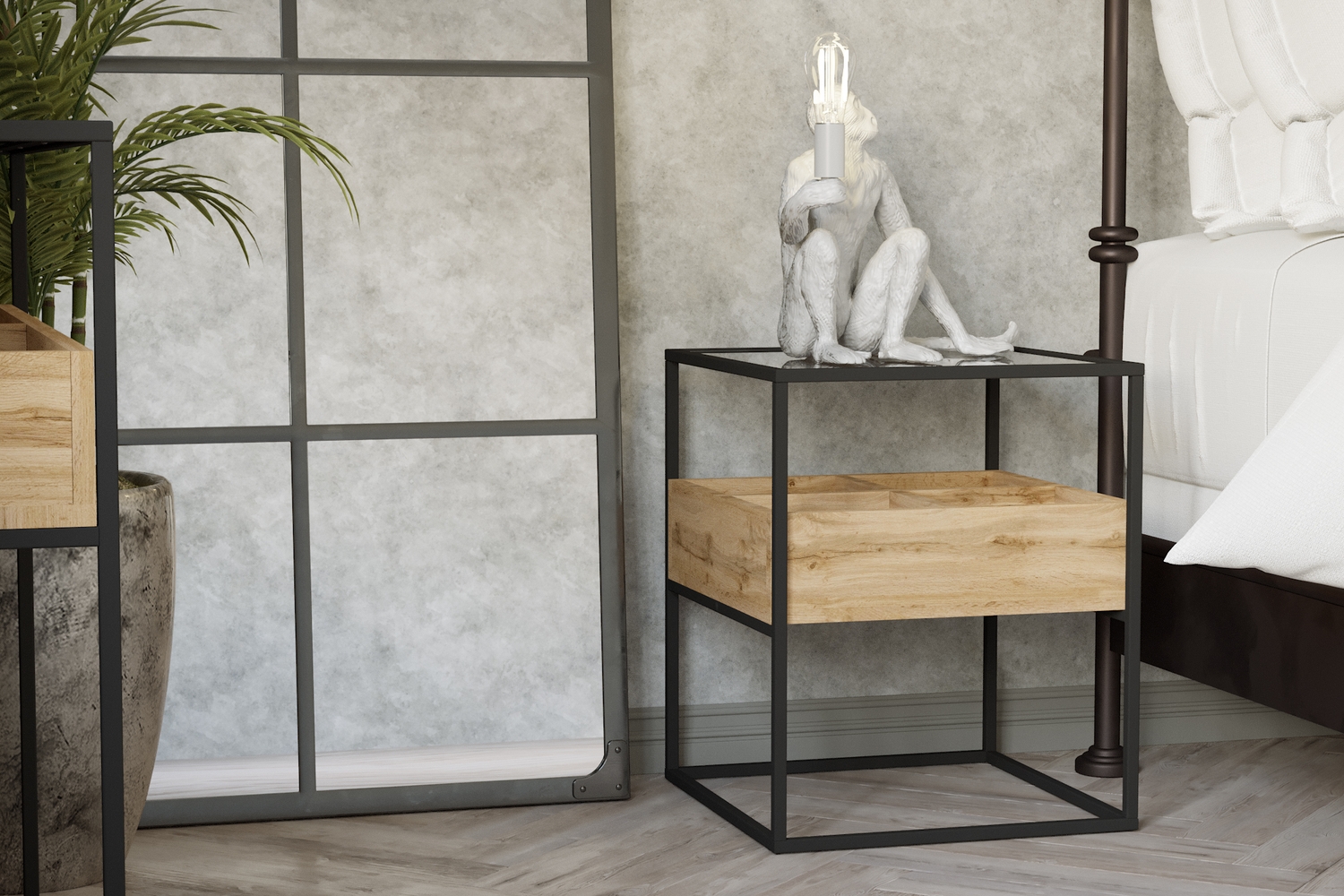 – описание: цвет дуб вотан, назначение для спальни, стиль лофт, размер 55.5x45x45 см.