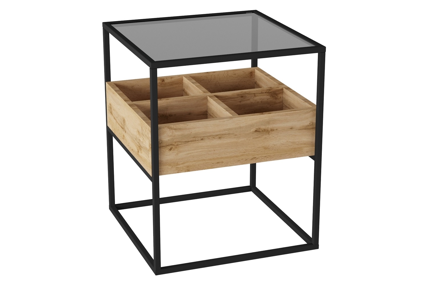 Прикроватная тумба Кассо выполнена в современном лаконичном стиле и уместно дополнит интерьер спальной комнаты. Стильная тумба приковывает внимание, прежде всего, своим исполнением: комбинацией материалов. Стеклянная столешница из тонированного закаленного стекла в сером цвете дополнена ячейками из ЛДСП для удобного хранения подручных вещей. А прочный металлический каркас толщиной 15 мм обеспечивает высокую прочность и устойчивость. В комплект входит вся необходимая фурнитура и удобная инструкция для сборки.