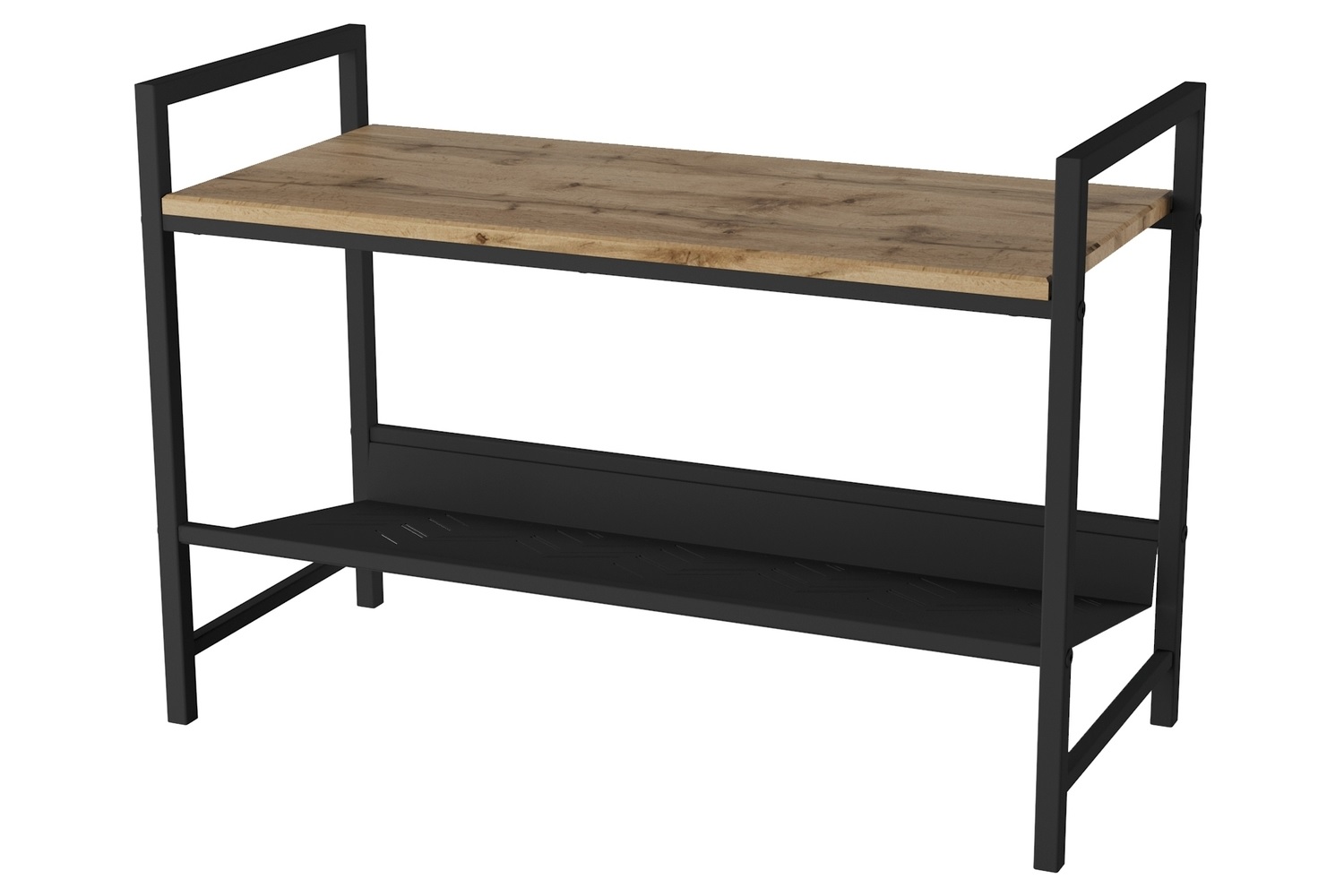 Скамья для прихожей Хигс выполнена в лаконичном стиле лофт. Удобная металлическая полка с перфорацией позволяет вместить в себя довольно много обуви и оставаться при этом легкой и не загромождающей пространство. Скамья выполнена из экологичного и прочного материала ЛДСП в сочетании с листовым металлом 1,5 мм.