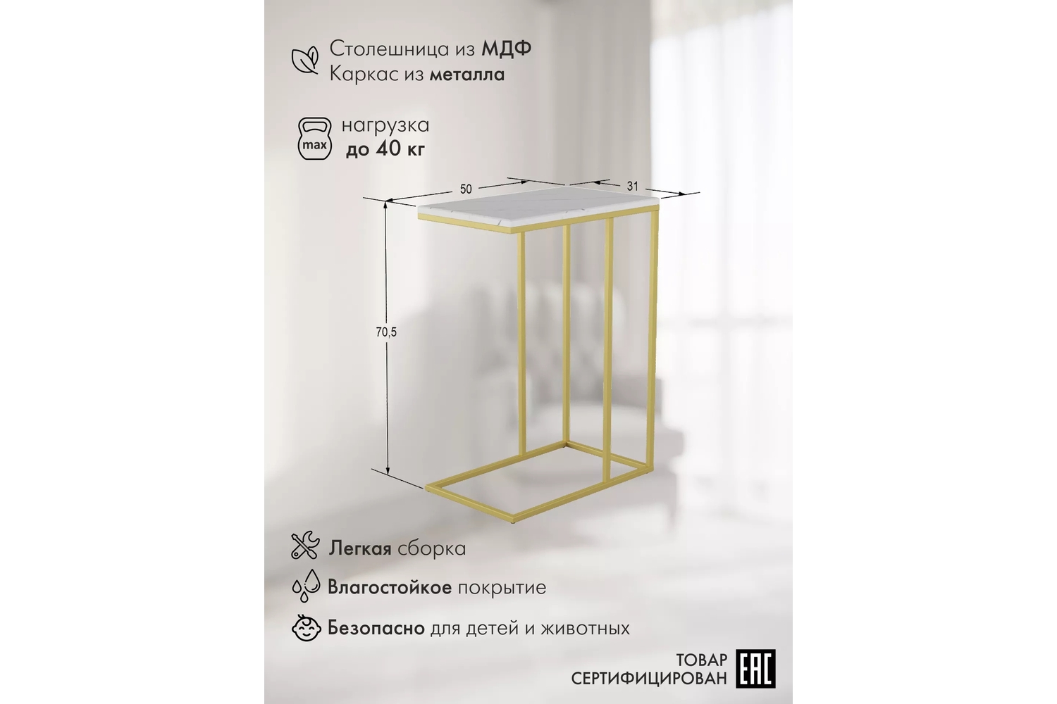 – описание: назначение для дома, для гостиной, цвет золотой, белый мрамор, размер 70.5x50x31 см, стиль лофт.