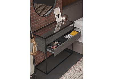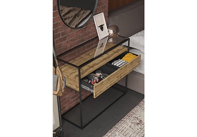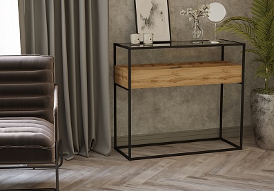 Лофт — это стиль, который прекрасно подойдет для практичных людей. А стол, выполненный в таком стиле, станет замечательным дополнением любого интерьера. Конструкция придиванного столика Остин позволяет расположить столешницу прямо над диваном или боковиной дивана, что достаточно удобно и функционально. Данный предмет мебели в декоре лофт будет отличаться лаконичной простотой, без излишеств. Данная модель придиванного столика несомненно порадует Вас своим простым и в то же время стильным и современным исполнением. Эстетическая составляющая — столешница с идеально глянцевой поверхностью из стекла Lacobel. Придиванный столик Остин своей лаконичностью и необычным оформлением без сомнений дополнит интерьер помещения и будет акцентировать внимание. Благодаря габаритным размерам стол Остин можно с легкостью расположить в пространстве гостиной или офиса. В комплект входит вся необходимая фурнитура и удобная инструкция для сборки. Максимальная нагрузка до 5 кг.