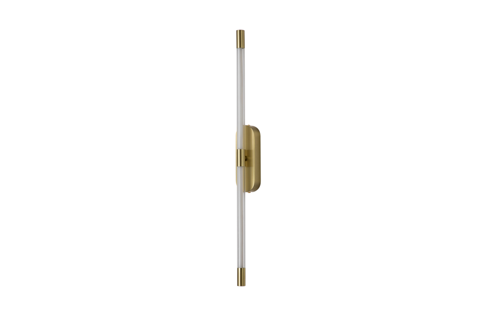 Arrow – коллекция настенных светильников в цвете золотой гальваники. Плафоны выполнены из белого полупрозрачного акрила. Светильники можно крепить как горизонтально, так и вертикально. Они подойдут для интерьеров как в классическом стиле, так и в стиле хай-тек.