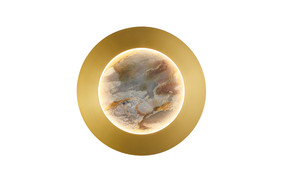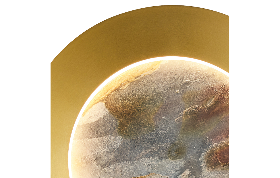 Коллекция Lago расширяет границы визуального восприятия декоративного материла LAGO натуральный песчаник, умелое использование которого сделает любой интерьер авторским. Настенные светильники оснащены двумя источниками света. Свет от LED-ленты, обрамляющий периметр декоративного диска на внешней стороне бра, выделяет фактуру камня и мягко освещает пространство вокруг. Второй источник света направлен в сторону стены и подсвечивает заднюю поверхность светильника, создавая ощущение, как будто он парит в воздухе в лучах света. Металлический каркас в матовом черном цвете, белый рассеивать из акрила, лента LED по периметру декоративного диска из натурального камня "зеленый песчаник" и на задней поверхности.