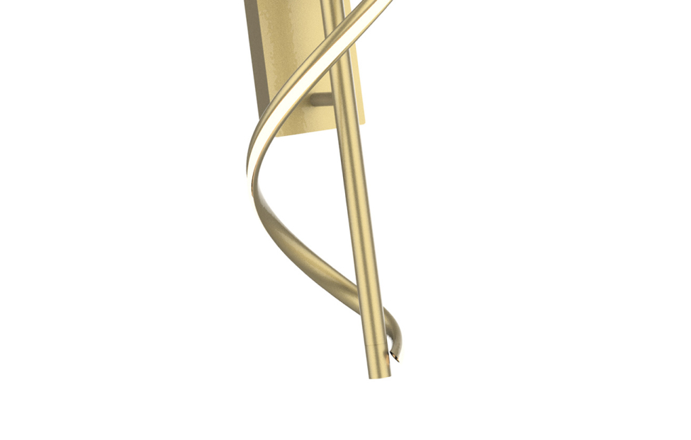 Настенный светильник Locket представлен в цвете матовое золото. Вытянутый жесткий профиль декорирован гибким профилем, который оснащен LED-лентой и мягкой волной оборачивается вокруг жесткого профиля.