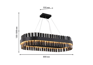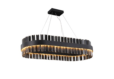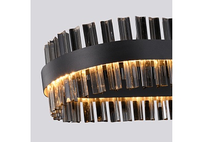 Металлический каркас в черном цвете, дымчато-серый хрусталь, встроенная лента LED.