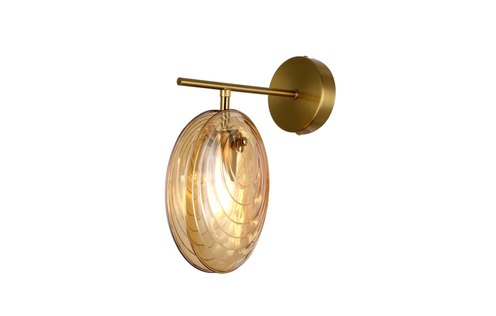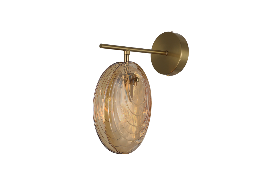 Коллекция светильников Media — это воплощение современного стиля. Светильники выполнены в цвете латуни, что придает им шарм и изысканность. Особенностью декора плафона является использование двух узорных стеклянных пластин, которые напоминают створки ракушки, внутри которых расположена сменная лампа Е14. Создается ощущение, что светильники декорированы стеклянными ракушками, что придает им неповторимый и оригинальный вид. Металлический каркас в цвете латунь, плафоны состоят из двух узорных стеклянных пластин янтарного цвета, цоколь E14.